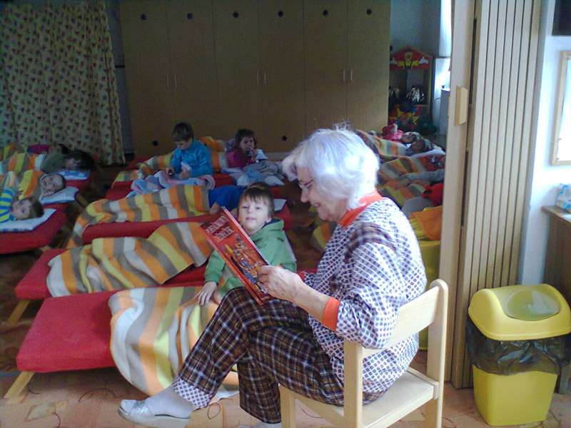Čtení kouzelné babičky a školáků