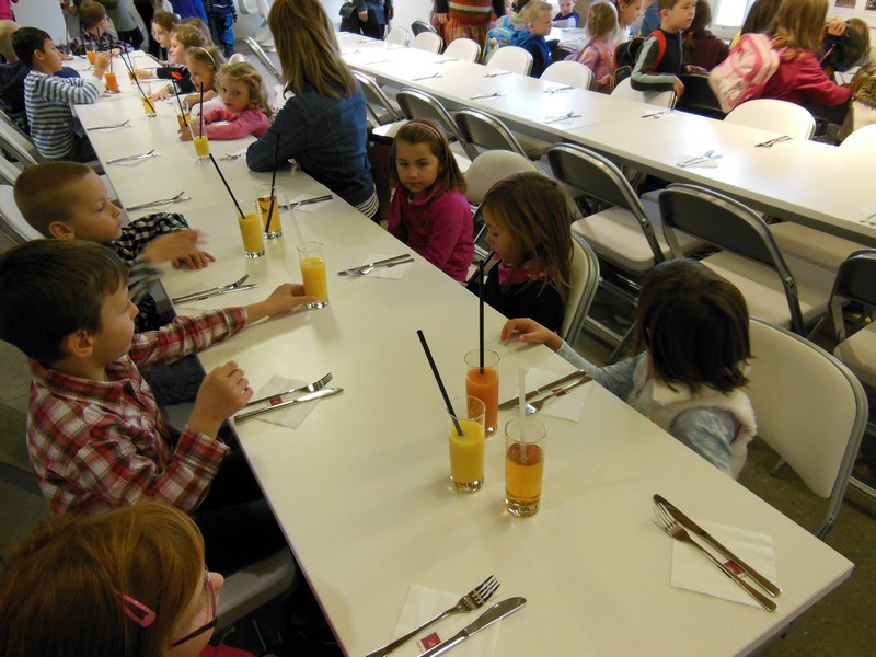 Chléb kmínový, pomazánka mrkvová , čaj, mléko, zelenina