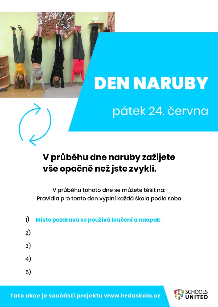 Na konci roku budou vylosovány 3 školy, které za splnění těchto akcí mohou vyhrát i super ceny. Tyto aktivity budou dělat zúčastněné školy ve stejný den, tak můžeme sledovat, jak prožívají tyto dny i ostatní školy.